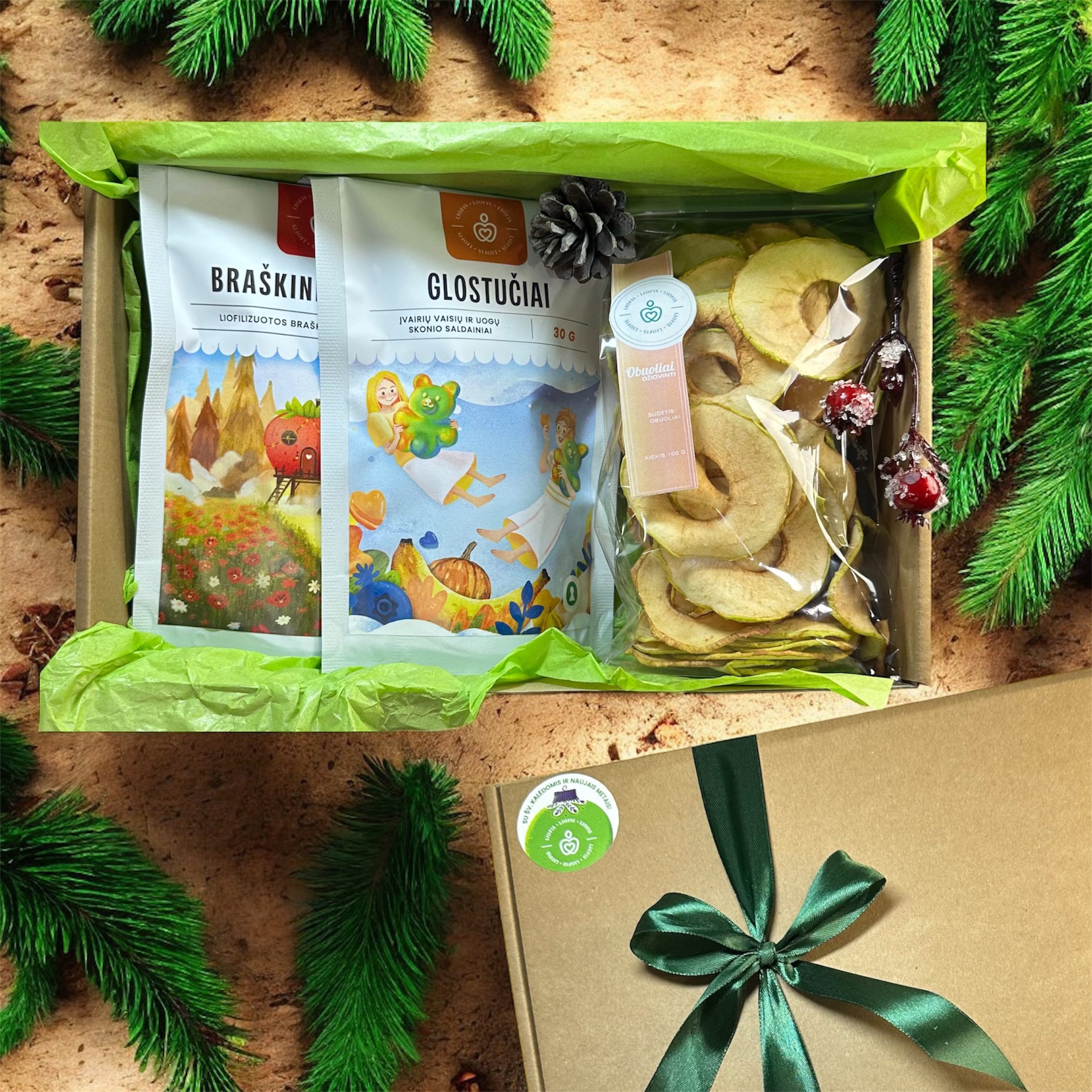 „Skaniausios šypsenos“ – dovanų rinkinys, sukurtas smagiam užkandžiavimui. Traškios liofilizuotos braškės – ryški pradžia, vaisių ir daržovių saldainiai džiugina kaip nedidelės staigmenos, o džiovinti obuoliai pratęsia šventę ilgiau. Čia dovanojamas ne daiktas, o emocija – kuri suvalgoma.