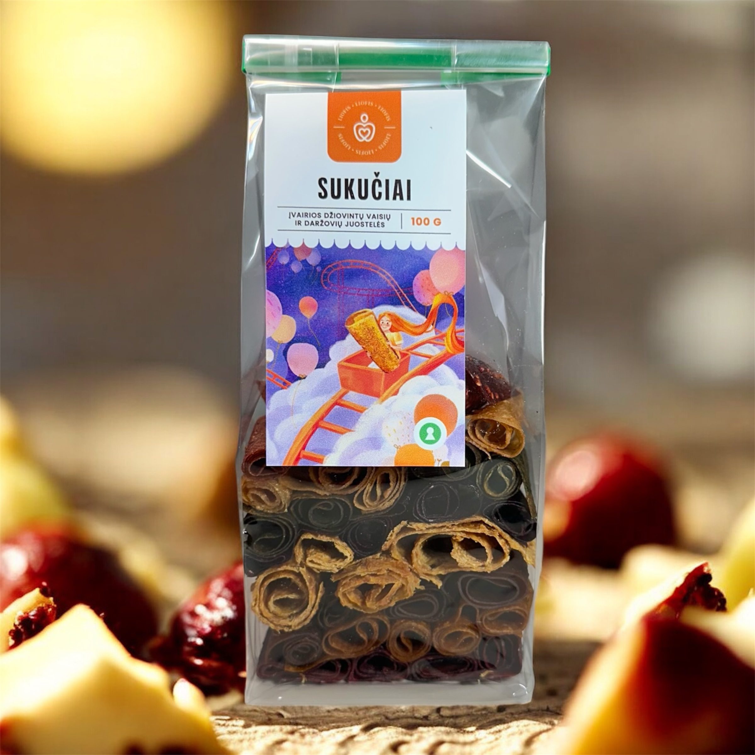 Sukučiai“ – tai išskirtinis vaisių, uogų ir daržovių derinys, kuriame darniai susilieja obuolių saldumas, bananų švelnumas, juodųjų serbentų ir spanguolių gaiva, slyvų sodrumas, sausmedžio uogų subtilumas, svarainių ir moliūgų šviesus rūgštelės tonas bei braškių aromatingas saldumas.